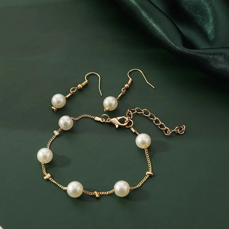 Conjunto 4 pçs ouro-cor colar brinco pulseira elegante